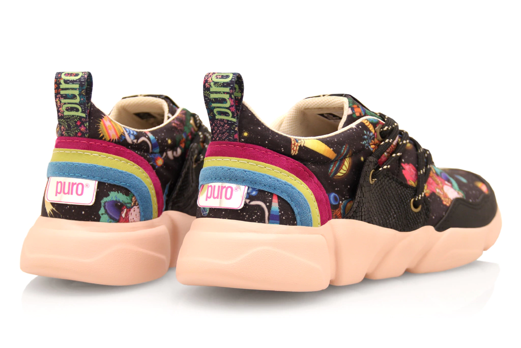 • Capellada y lengua en tela de microfibra reforzada estampada.