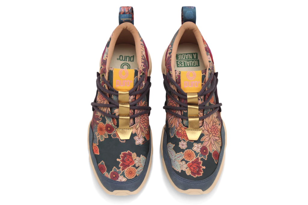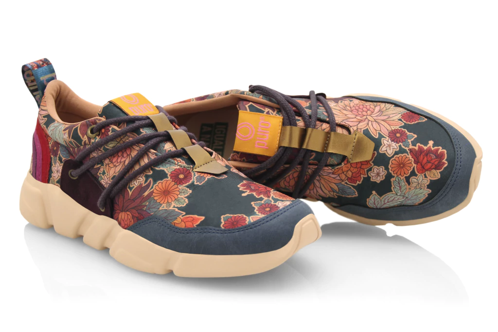 • Capellada y lengua en tela de microfibra reforzada estampada